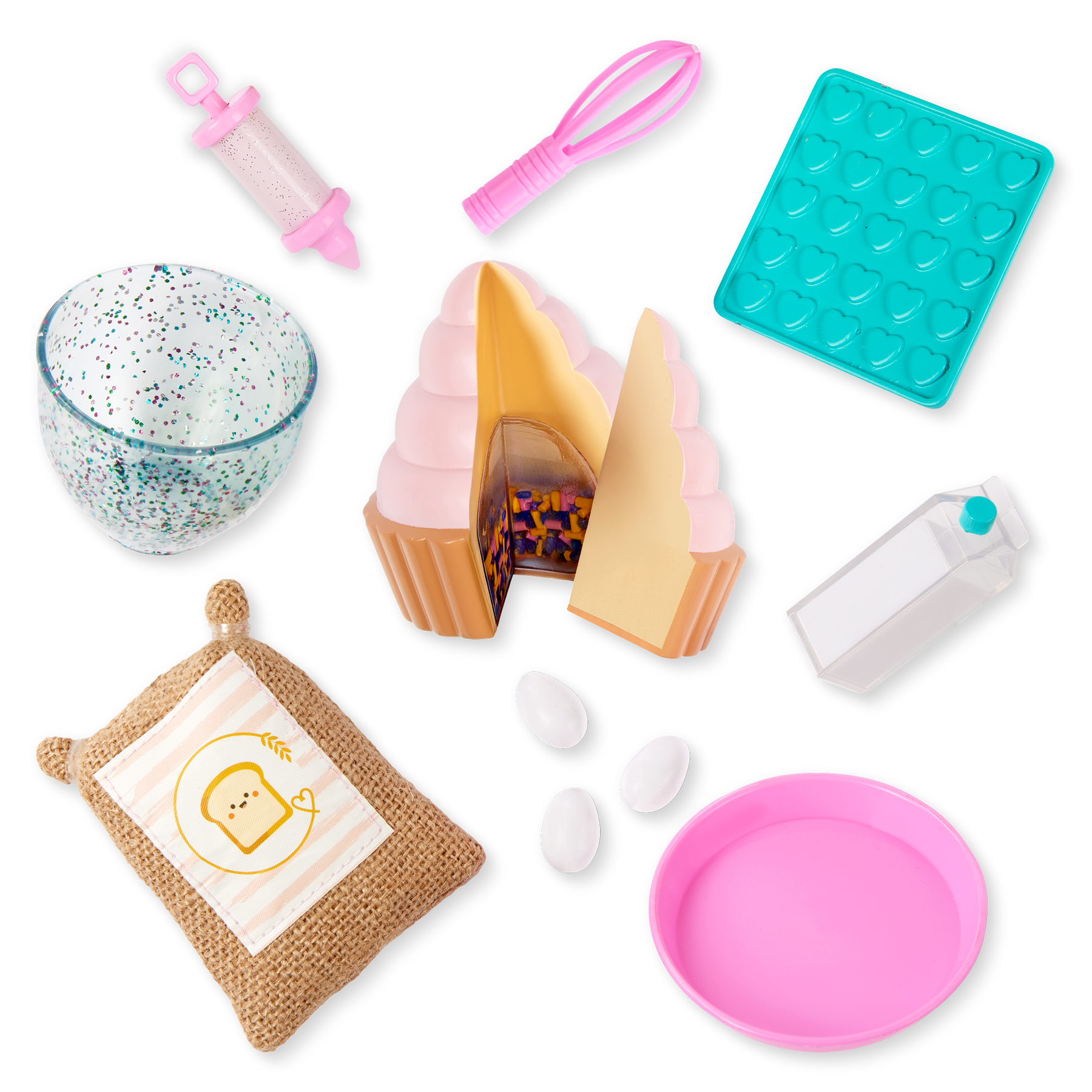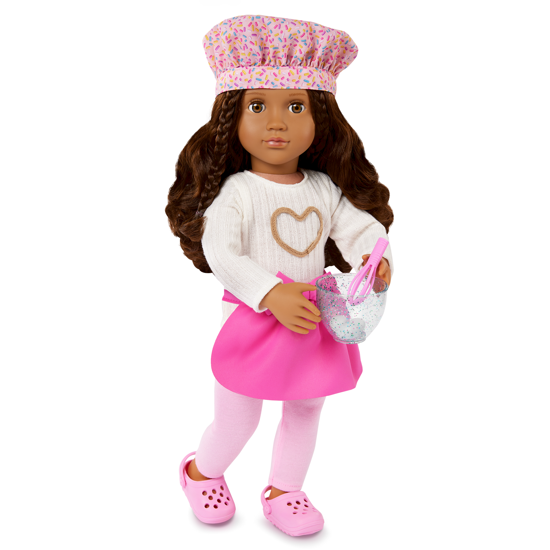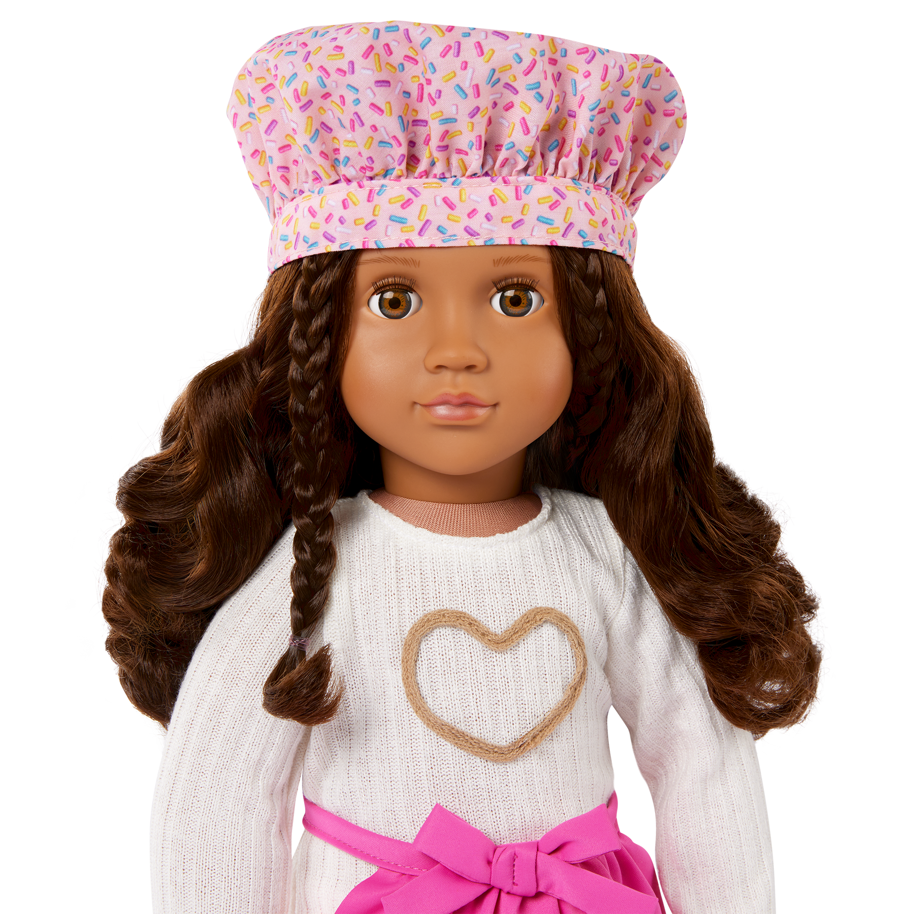 Bake up sweet treats and sweeter stories with Our Generation 46cm doll Paola! She's about to enter a bake-off competition on a popular kids' TV show with her best friend Emery. But… they have very different ideas about which special dessert to make. What happens when best friends disagree? Follow this tasty adventure in her storybook, Baking with Love, to see where her story takes her! Bursting with energy and flair, Paola is the life of the kitchen party. Each recipe she whips up is a colourful reflection of her vibrant personality. She comes with a complete outfit and themed accessories, letting kids play out the ultimate baking challenges and create their own playtime recipes. Paola has a huggable soft body and lifelike features that will delight doll fans for hours of playtime, from her beautiful hazel eyes that open and close to her stylable brown hair. Plus, her bendable arms and legs inspire added poses! Compatible with most 46cm dolls, doll clothes, and doll accessories. Our Generation dolls make a great gift for kids 3 years old and up (small parts).