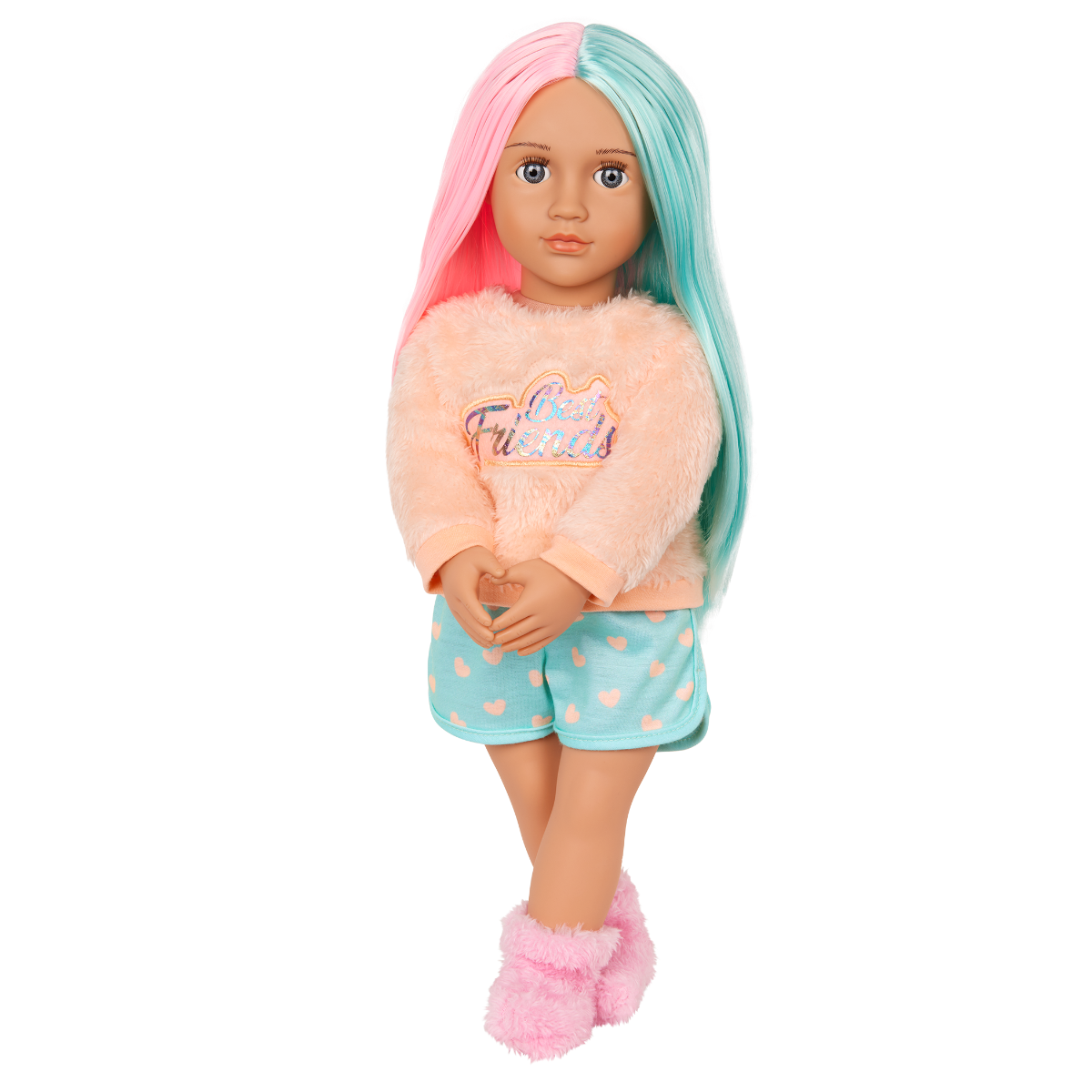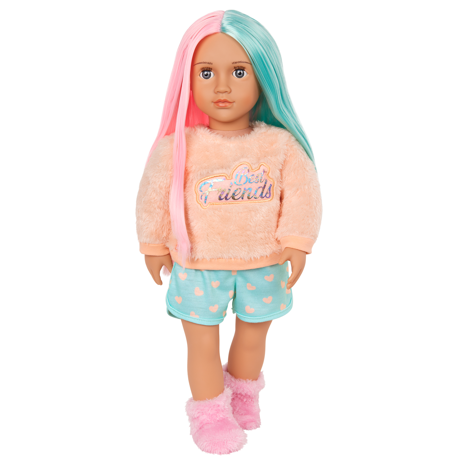 Lumi - 46cm Sleepover Doll - OG Doll with Pink & Green Hair - Toys & Gifts for Kids - Our Generation UK